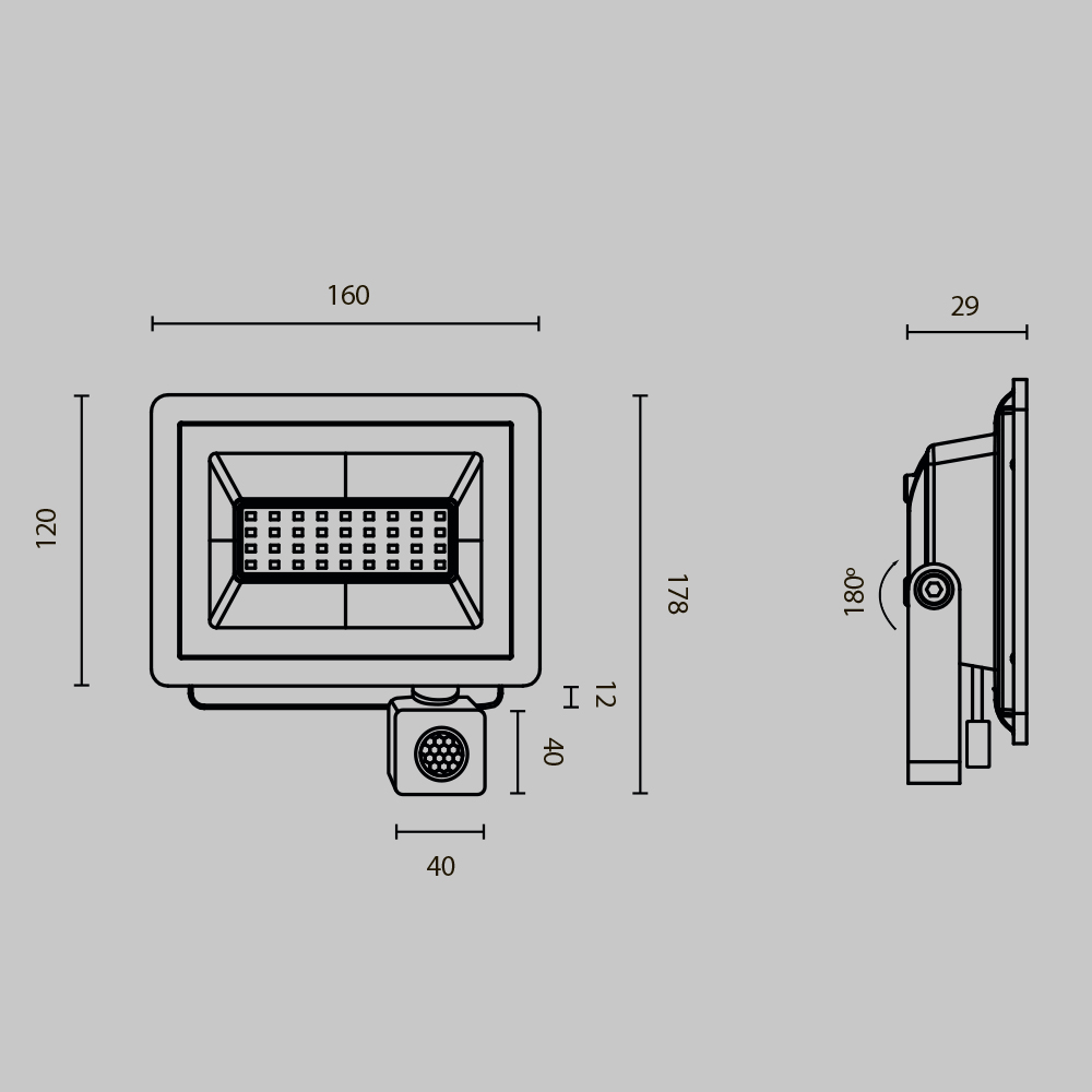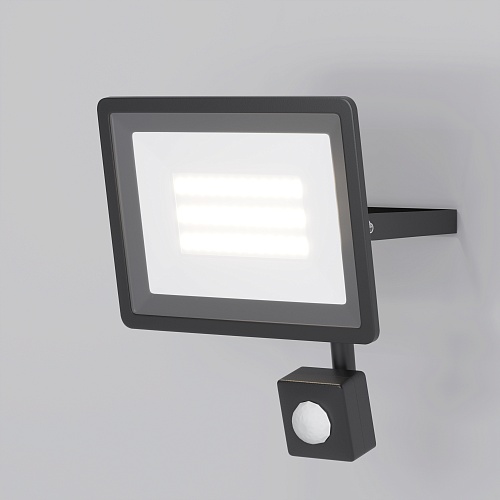 Прожекторы для освещения экстерьеров, рабочих пространств, производственных и промышленных помещений. Материал корпуса — алюминий. Цвет — чёрный. LED-источник света. Два варианта цветовой температуры - 4000К и 6500К. Пять размеров с соответствующими вариантами мощности — 10, 30, 50 Вт с датчиком движения. Модели 100 и 150 Вт без датчиков движения. Высокая степень защиты от пыли и влаги IP65.