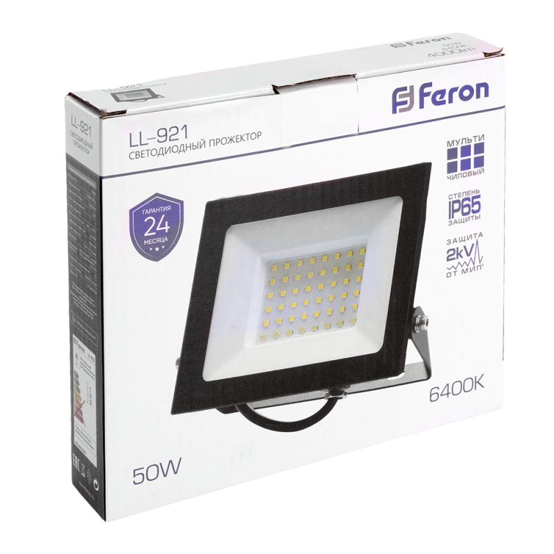 Характеристики Светодиодный прожектор Feron LL-921 IP65 50W 6400K