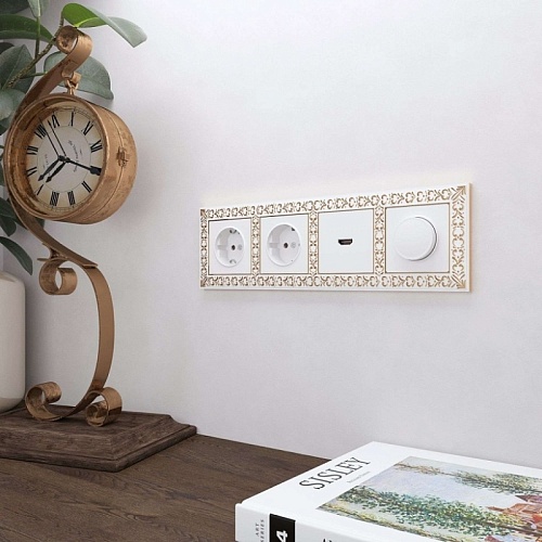 Рамка из металла на 4 поста Аntik белое золото W0041523