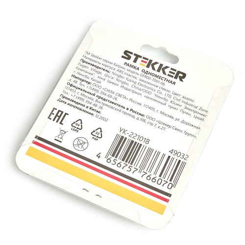 Характеристики Рамка 1-местная, стекло, STEKKER GFR00-7001-08, серия Катрин, золото