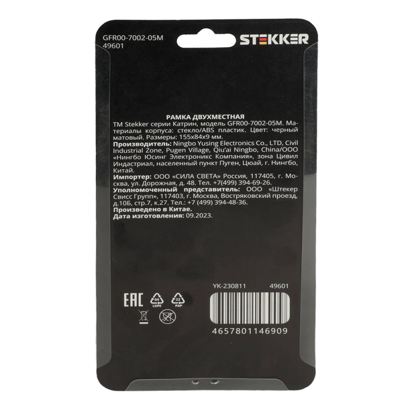 Характеристики Рамка 2-местная, стекло, STEKKER GFR00-7002-05М, серия Катрин, черный матовый