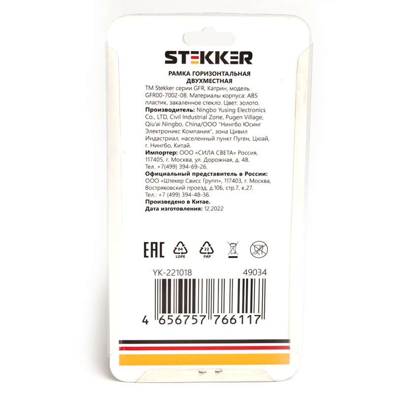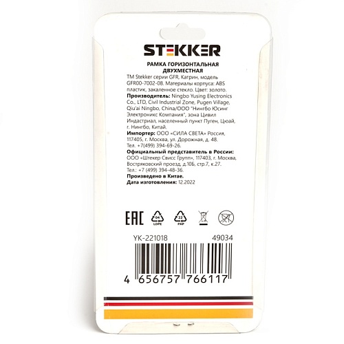Характеристики Рамка 2-местная, стекло, STEKKER GFR00-7002-08, серия Катрин, золото