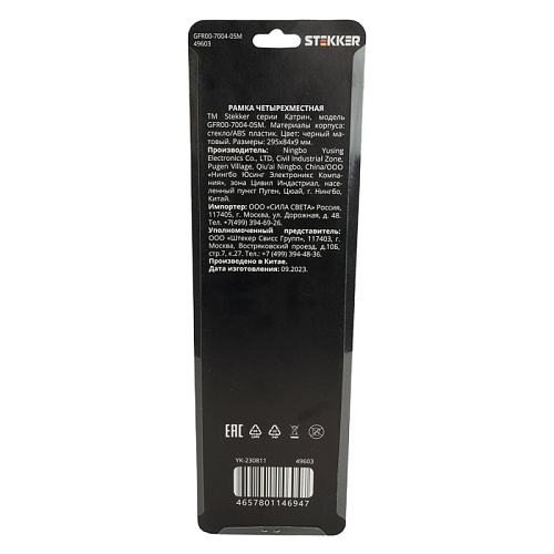 Характеристики Рамка 4-местная, стекло, STEKKER GFR00-7004-05М, серия Катрин, черный матовый