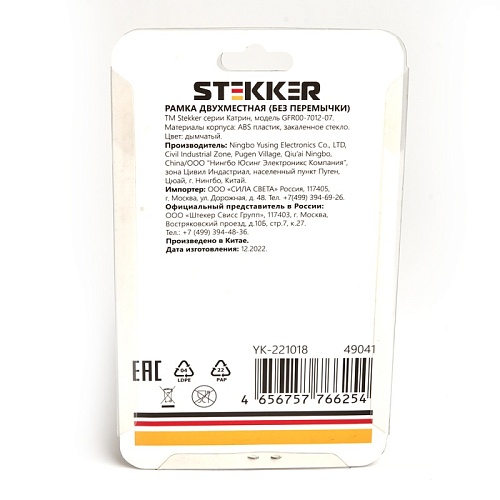 Характеристики Рамка 2-местная (без перемычки), стекло, STEKKER, GFR00-7012-07, серия Катрин, дымчатый