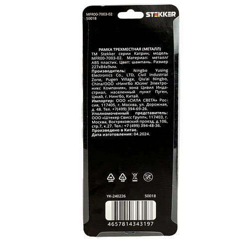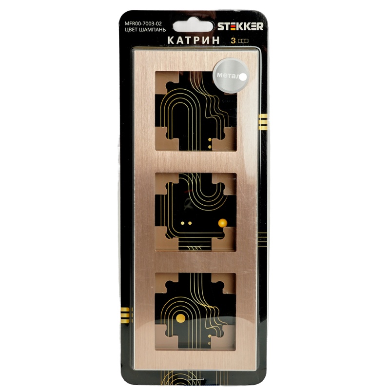 Характеристики Рамка 3-местная, металл, ,STEKKER, MFR00-7003-02, серия Катрин, шампань