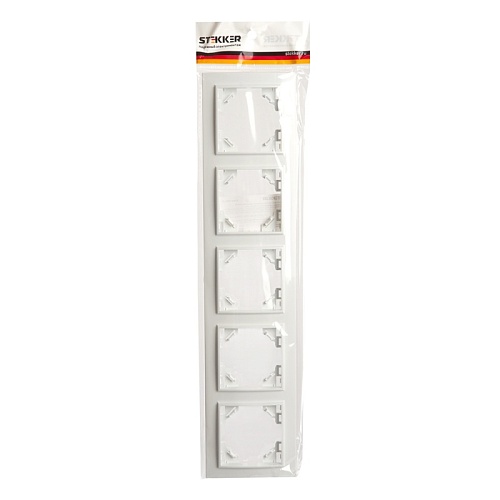Рамка 5-местная горизонтальная STEKKER, PPFR00-9005-01, серия Эрна, белый 39620