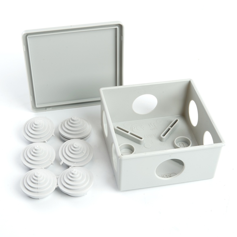 Характеристики Коробка разветвительная STEKKER EBX10-34-44, 85*85*40мм, 6 вводов, IP44, светло-серая (GE41235)