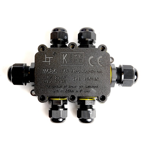Коробка распределительная LD526 водонепроницаемая на 6 выходов, 450V, 140х100х36, черный