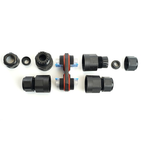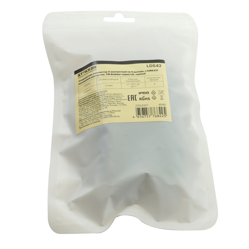 Характеристики Соединитель-коннектор LD542 3-контактный на 4 выхода, с СМК221 пружинным контактом IP68, черный