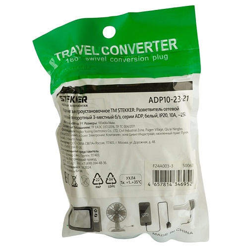Разветвитель сетевой 3-местный б/з STEKKER ADP10-23-21, 250В, 10A, белый