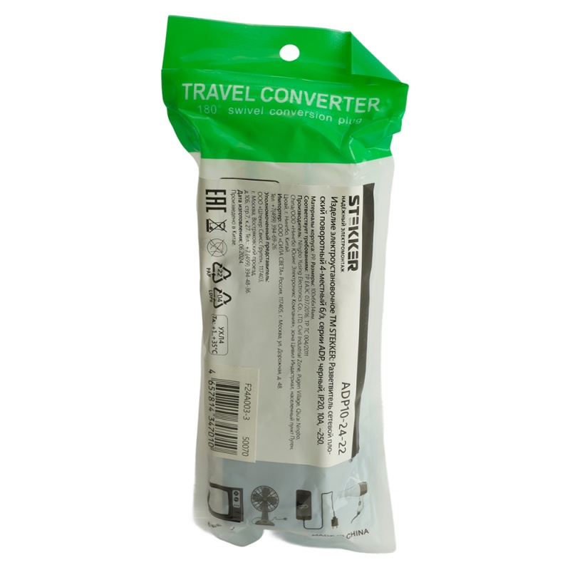 Разветвитель сетевой 4-местный б/з STEKKER ADP10-24-22, 250В, 10A, черный