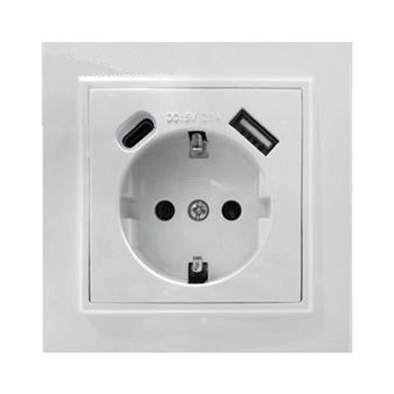 Розетка 1-местная STEKKER, PST16-9016-01, 250В, 2.1А с USB+ type C, серия Эрна, белый