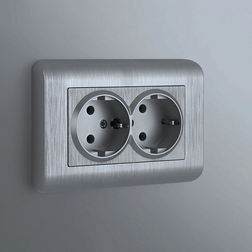 Характеристики Розетка двойная с заземлением (серебряный рифленый) W1172009