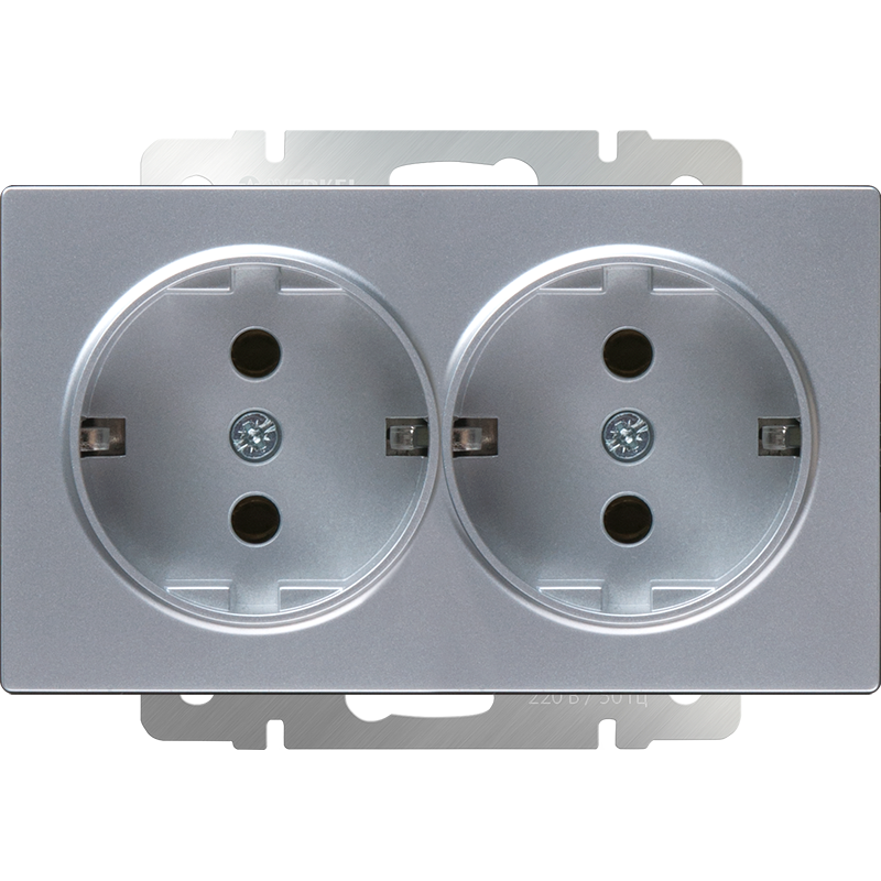 Характеристики Розетка двойная с заземлением серебряный WL06-SKG-02-IP20