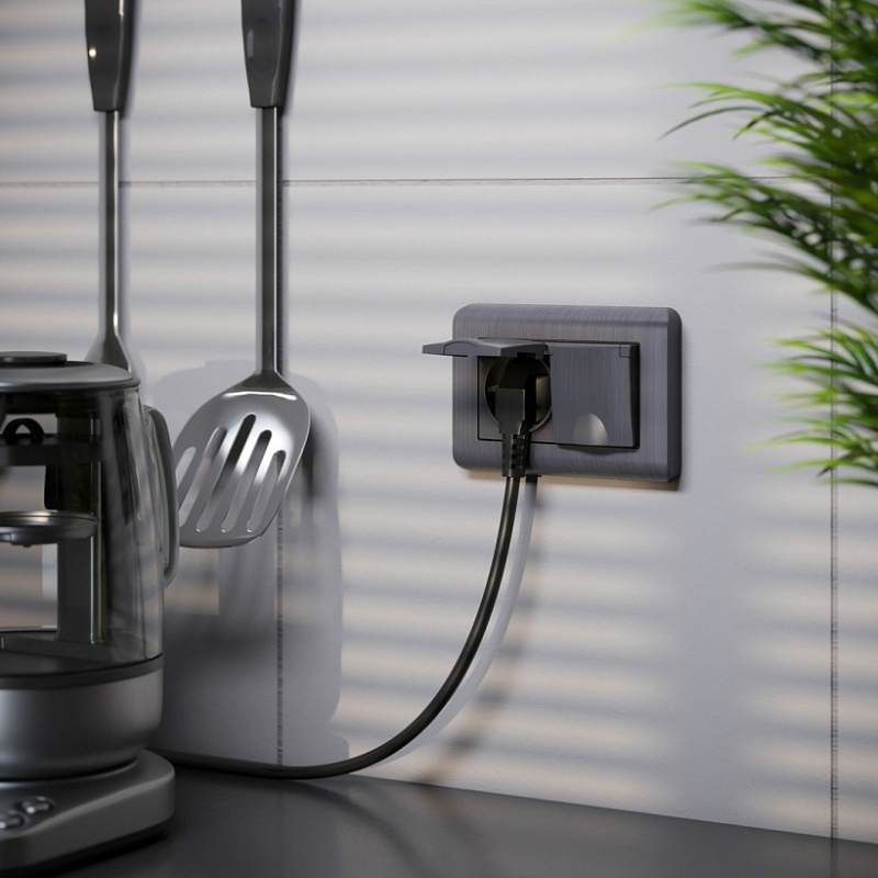 Отзывы о Розетка двойная влагозащ. с зазем. с защит. крышками и шторками (графит рифленый) W1172204
