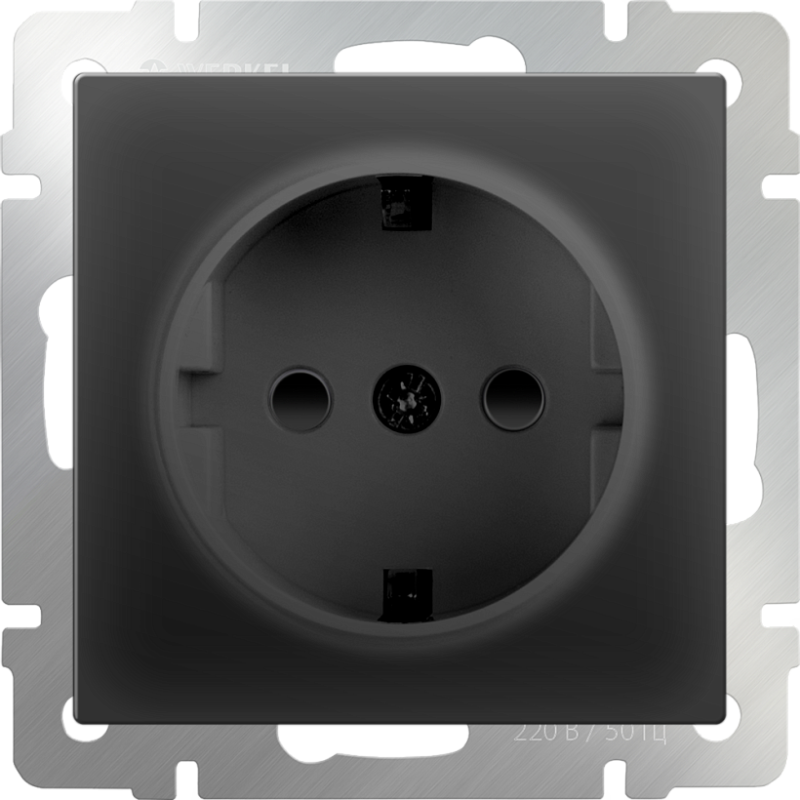 Розетка с заземлением, безвинтовой зажим черный матовый WL08-10-01