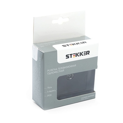 Отзывы о Розетка телевизионная 1-местная ,STEKKER, GLS00-7008-05 ,75 Ом, 5-862МГц, серия Катрин, черный