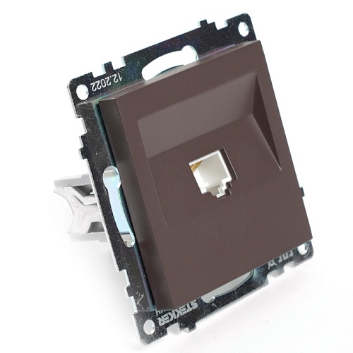 Розетка компьютерная 1-местная RJ-45 (механизм), STEKKER GLS00-7107-04, серия Катрин, шоколад