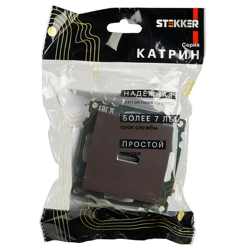 Розетка HDMI 2.1, Type A (механизм), STEKKER GLS00-7118-04, серия Катрин, шоколад 50064