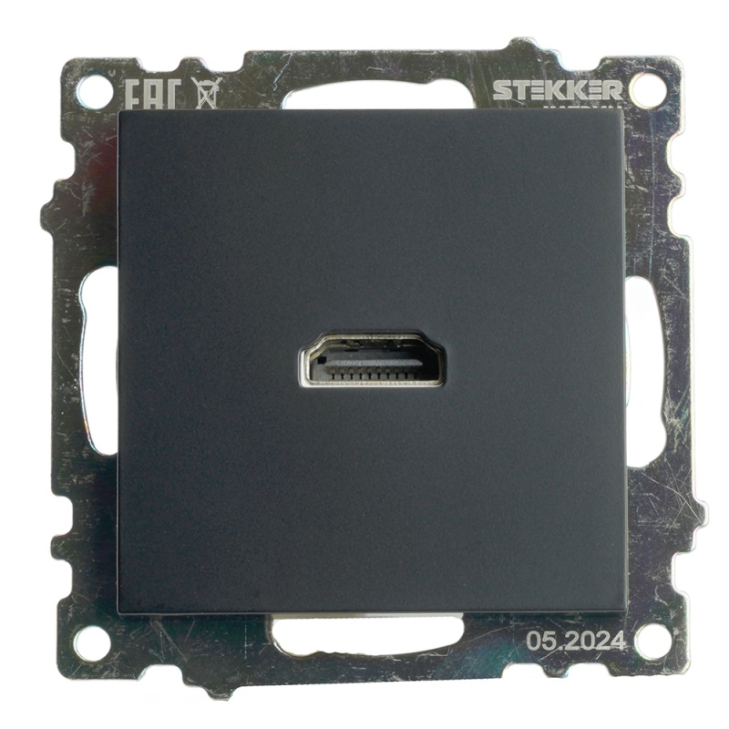 Розетка HDMI 2.1, Type A (механизм), STEKKER GLS00-7118-05, серия Катрин, черный 50062
