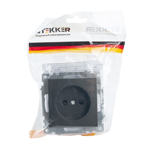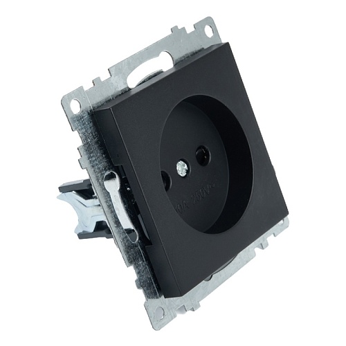 Розетка 1-местная б/з (механизм), STEKKER GLS10-7109-05, 250V, 10А с защитной шторкой, серия Катрин, черный 39609