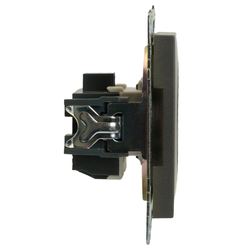 Характеристики Розетка 1-местная с защитной шторкой (механизм) б/з, 250В, 10А, серия Катрин, графит, GLS10-7109-06