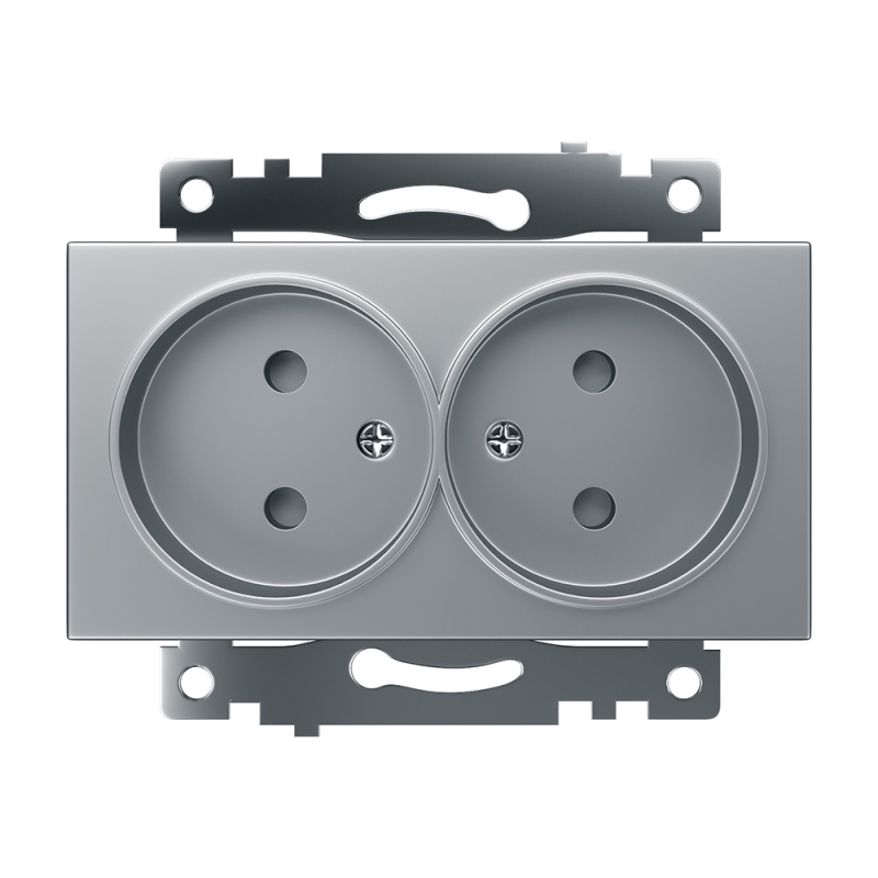 Розетка 2-местная б/з (механизм), STEKKER GLS10-7109-03, 250V, 10А с защитной шторкой, серия Катрин, серебро