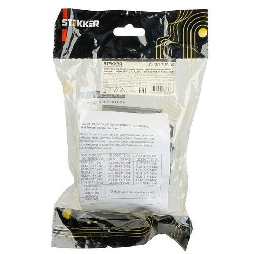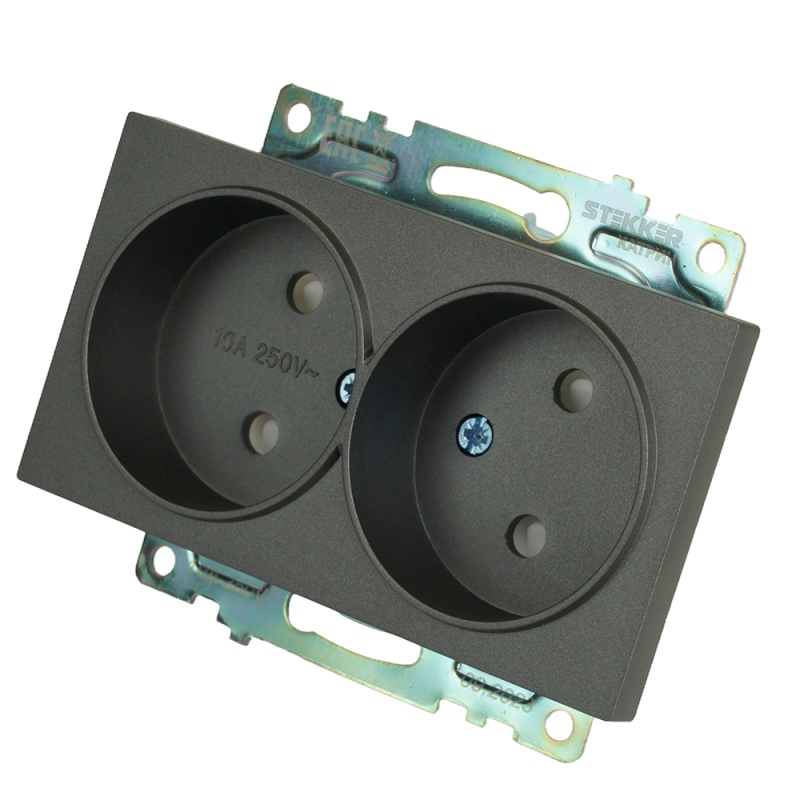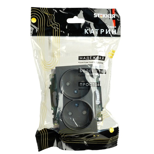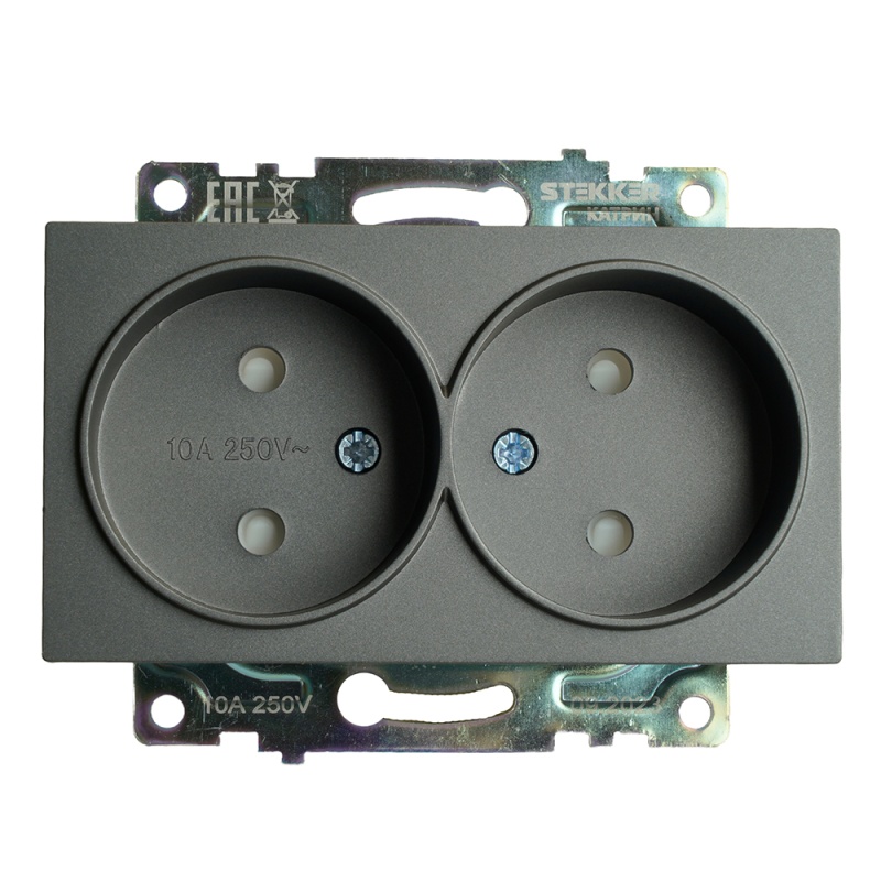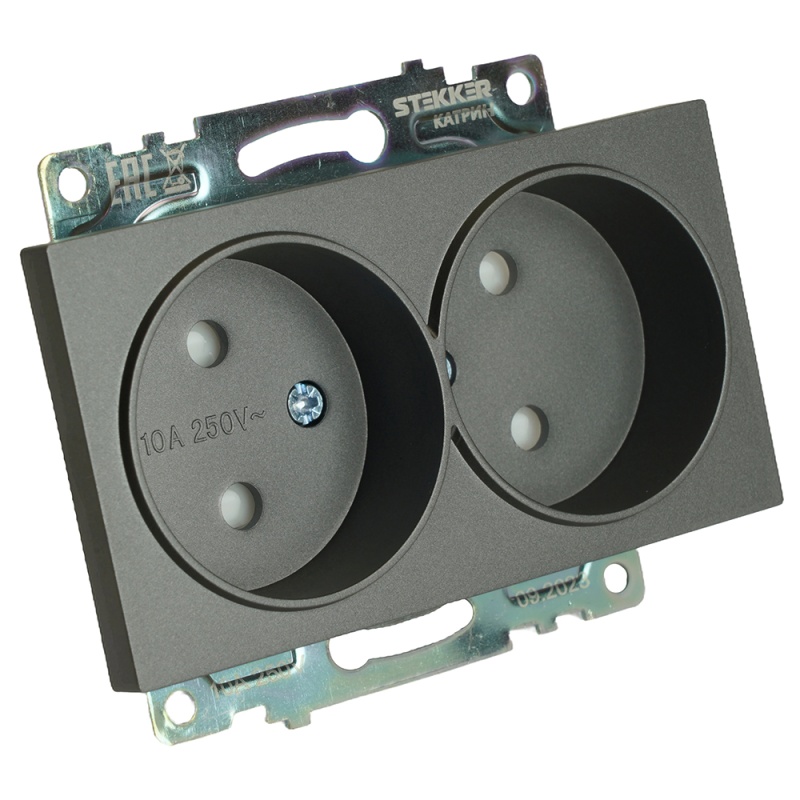 Отзывы о Розетка 2-местная с защитной шторкой (механизм) б/з, 250В, 10А, серия Катрин, графит, GLS10-7113-06