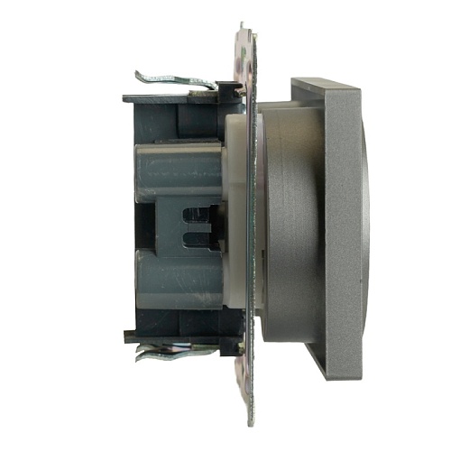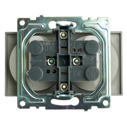 Характеристики Розетка 2-местная с защитной шторкой (механизм) б/з, 250В, 10А, серия Катрин, графит, GLS10-7113-06