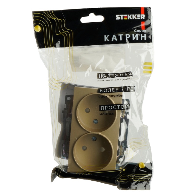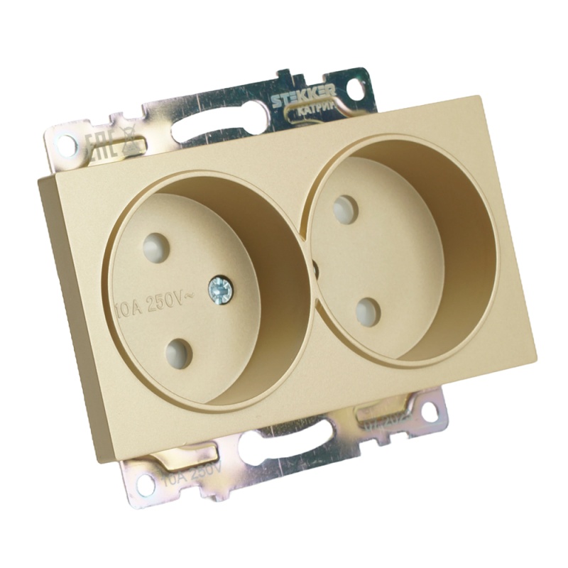 Отзывы о GLS10-7113-08 Розетка 2-местная с защитной шторкой (механизм) б/з, 250В, 10А, серия Катрин, золото