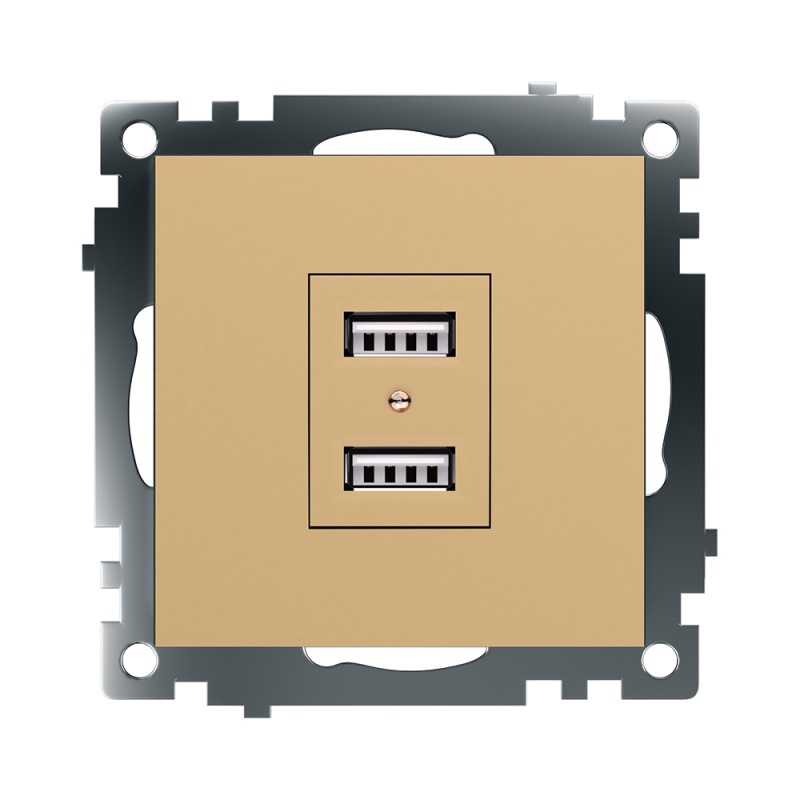 Розетка 2-местная USB (механизм), STEKKER, GLS10-7115-08, 250В, 2,1А, серия Катрин, золото 49229