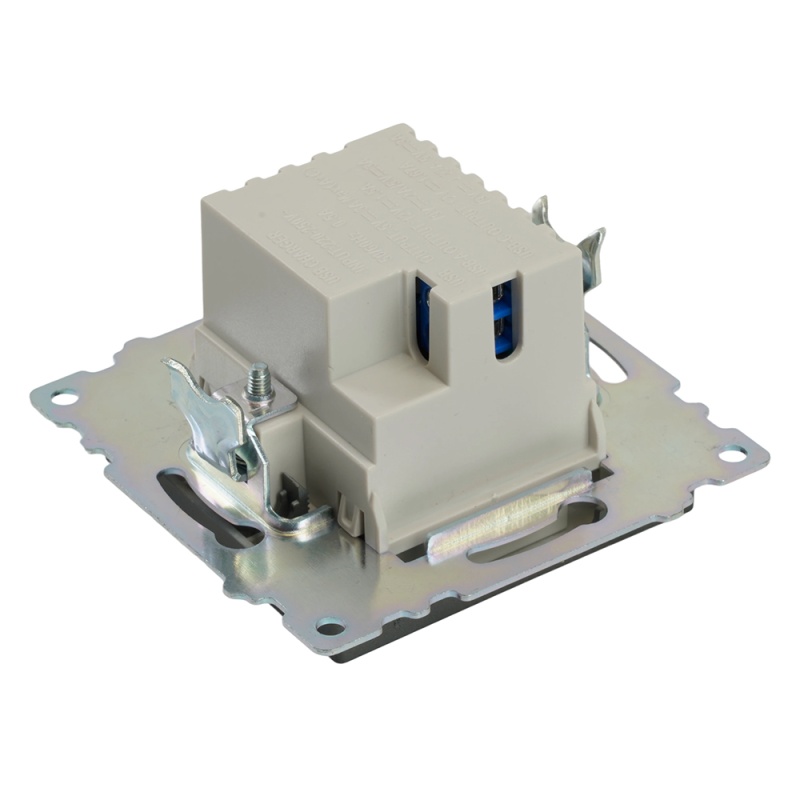 Характеристики Розетка 2-местная USB + type C (механизм), 250В, 3А, max 20W, серия Катрин, графит, GLS10-7116-06