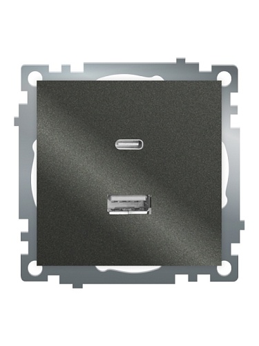 Розетка 2-местная USB + type C (механизм), 250В, 3А, max 20W, серия Катрин, графит, GLS10-7116-06