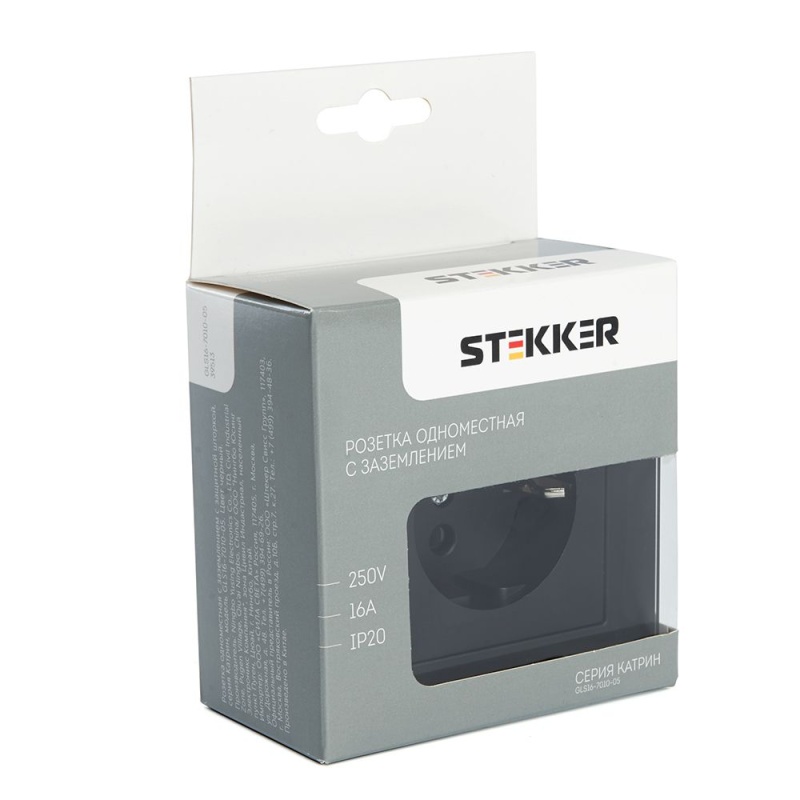 Характеристики Розетка 1-местная с защитной шторкой с/з STEKKER GLS16-7010-05, 250В, 16А, черный