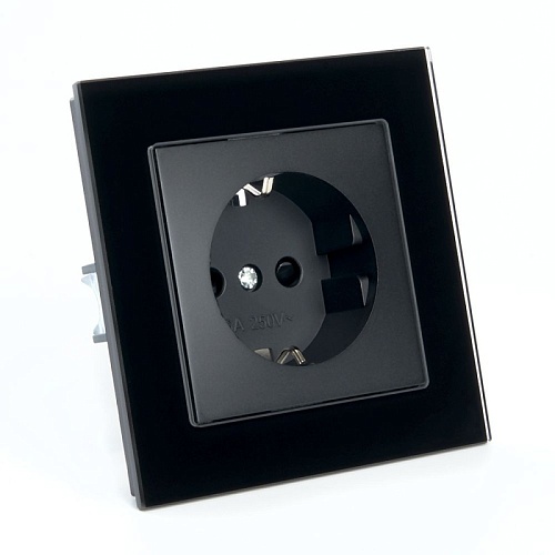 Розетка 1-местная с защитной шторкой с/з STEKKER GLS16-7010-05, 250В, 16А, черный