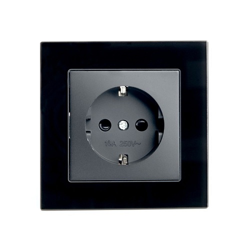 Розетка 1-местная с защитной шторкой с/з STEKKER GLS16-7010-05, 250В, 16А, черный 39513