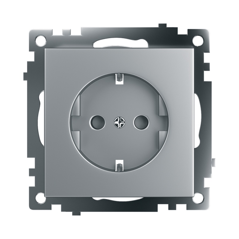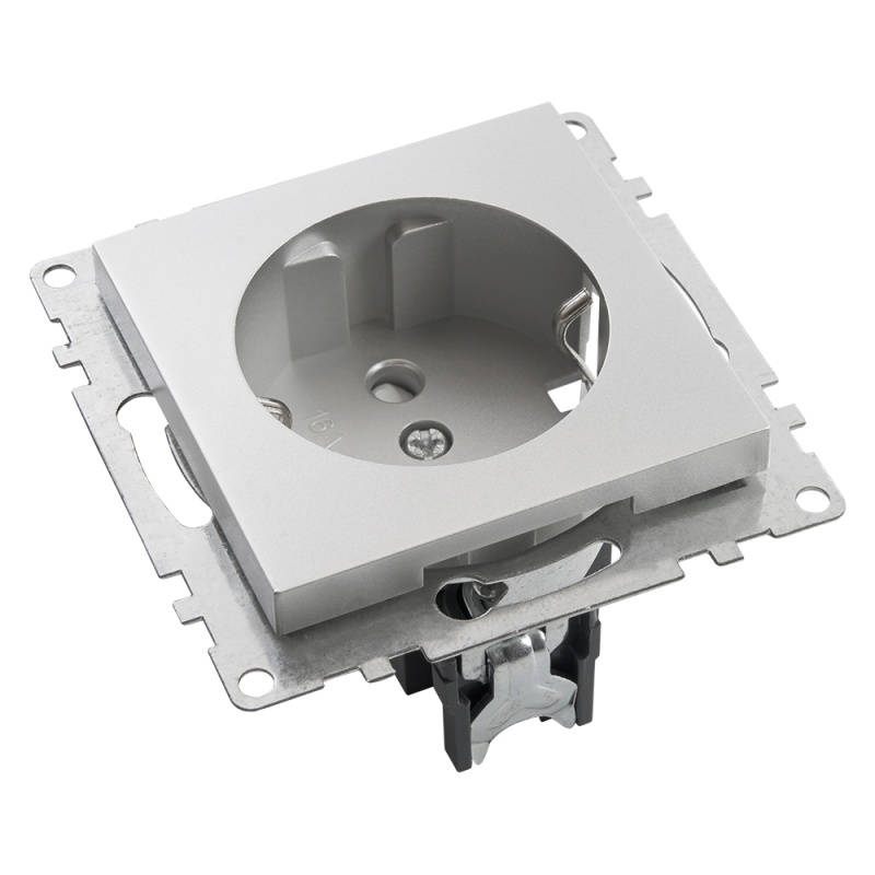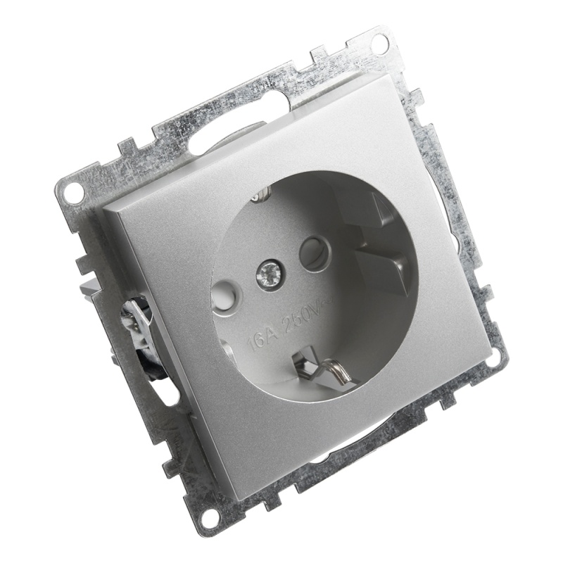 Характеристики Розетка 1-местная с/з (механизм), STEKKER GLS16-7110-03, 250В, 16А с защитной шторкой, серия Катрин, серебро