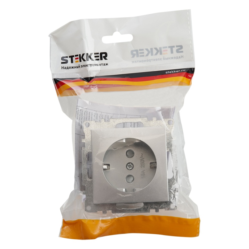 Отзывы о Розетка 1-местная с/з (механизм), STEKKER GLS16-7110-03, 250В, 16А с защитной шторкой, серия Катрин, серебро