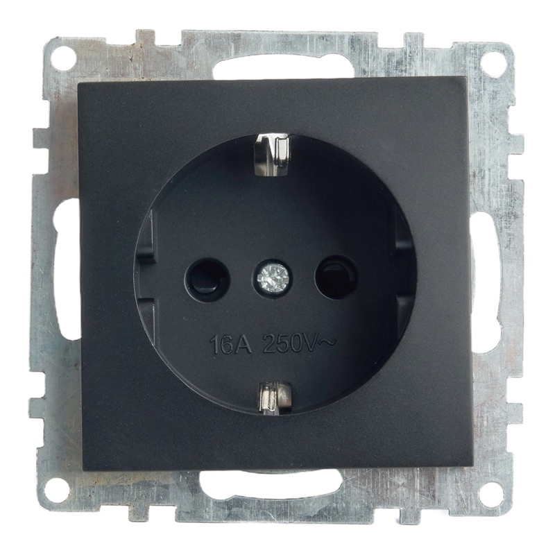 Розетка 1-местная с/з (механизм), STEKKER GLS16-7110-05, 250В, 16А с защитной шторкой, серия Катрин, черный 39610