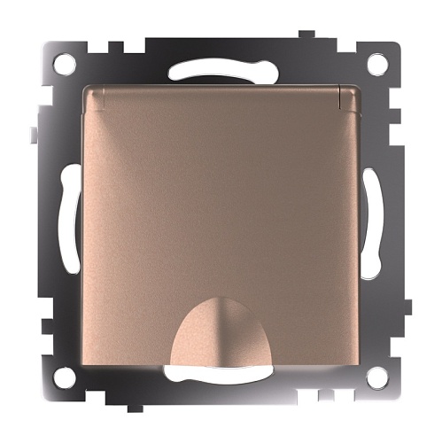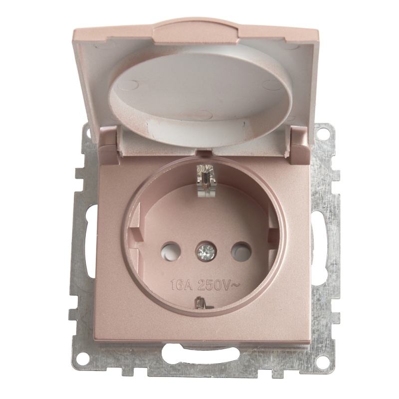 Розетка 1-местная с/з с крышкой (механизм), STEKKER GLS16-7112-02, 250В, 16А с защитной шторкой, серия Катрин, шампань