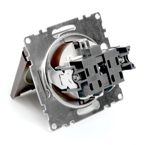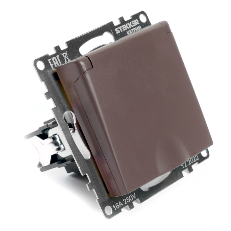 Характеристики Розетка 1-местная с/з с крышкой (механизм), STEKKER GLS16-7112-04, 250В, 16А с защитной шторкой, серия Катрин, шоколад