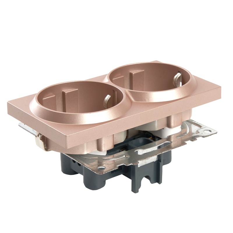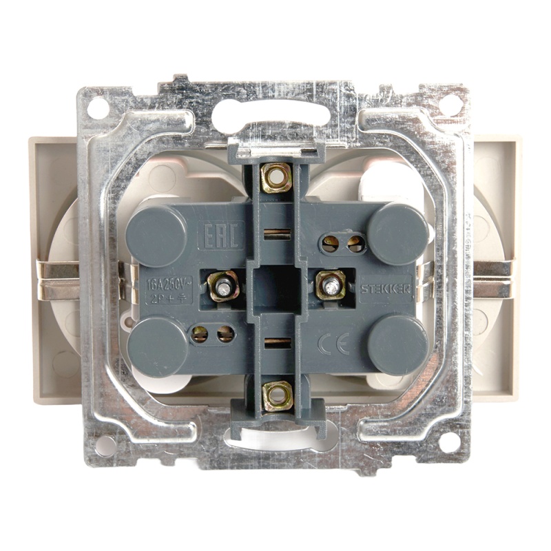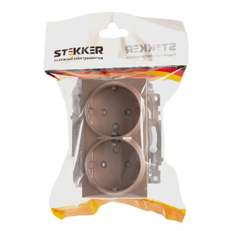 Отзывы о Розетка 2-местная с/з (механизм), STEKKER GLS16-7114-02, 250В, 16А с защитной шторкой, серия Катрин, шампань