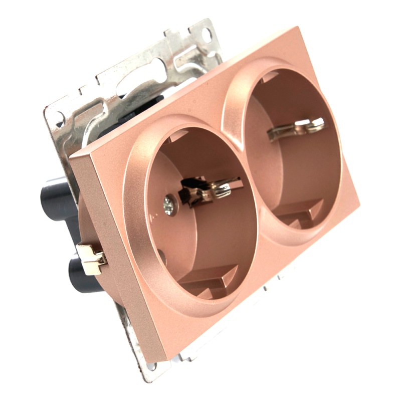 Розетка 2-местная с/з (механизм), STEKKER GLS16-7114-02, 250В, 16А с защитной шторкой, серия Катрин, шампань