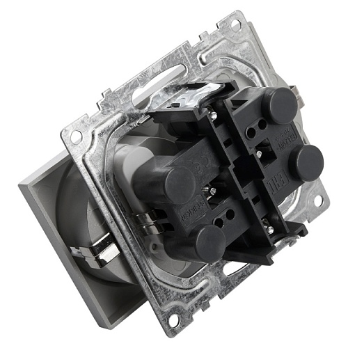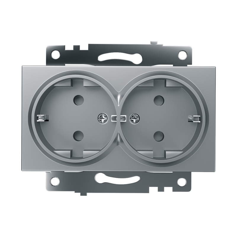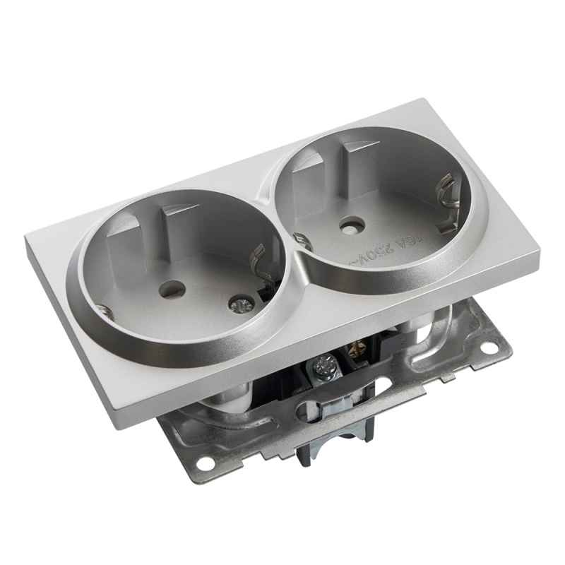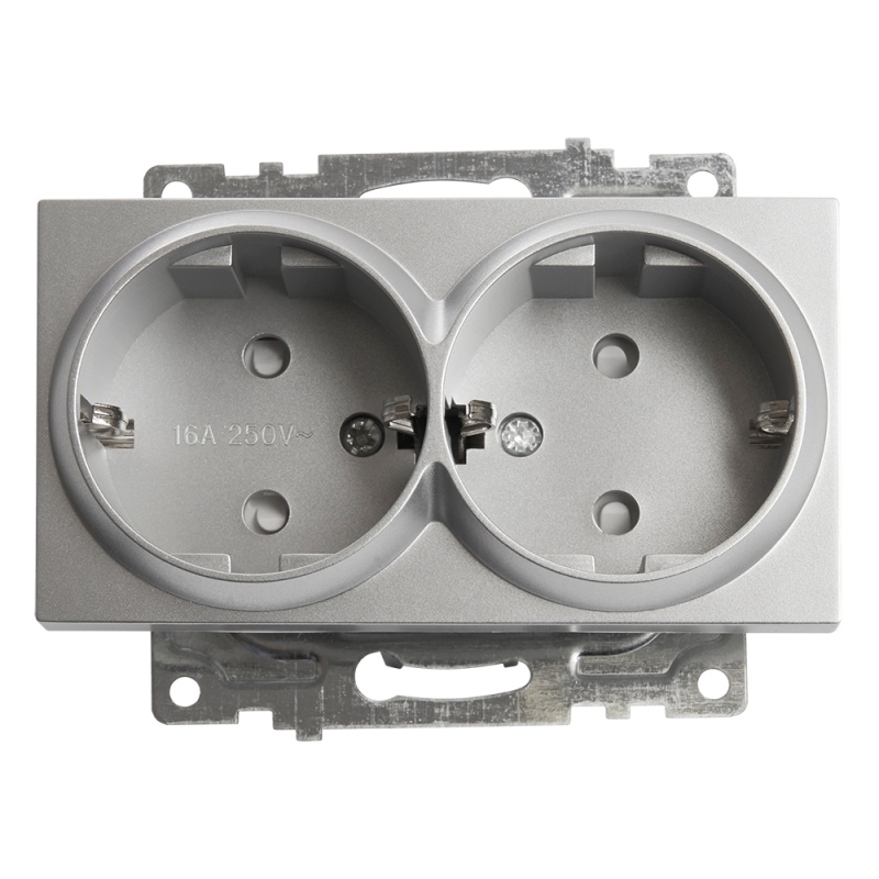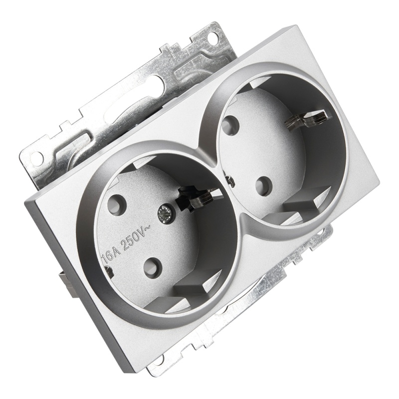 Розетка 2-местная с/з (механизм), STEKKER GLS16-7114-03, 250В, 16А с защитной шторкой, серия Катрин, серебро 39584