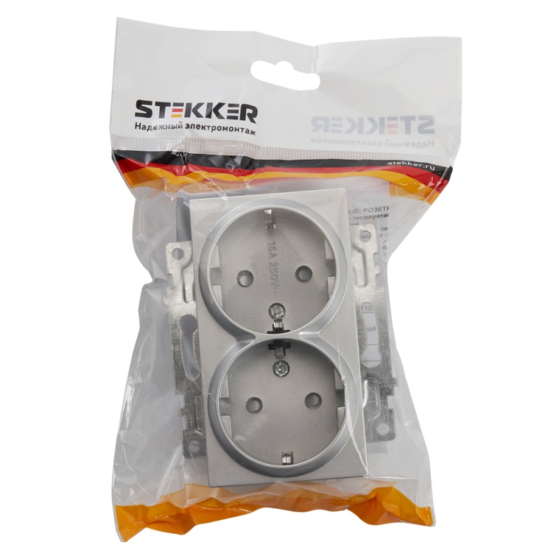 Отзывы о Розетка 2-местная с/з (механизм), STEKKER GLS16-7114-03, 250В, 16А с защитной шторкой, серия Катрин, серебро