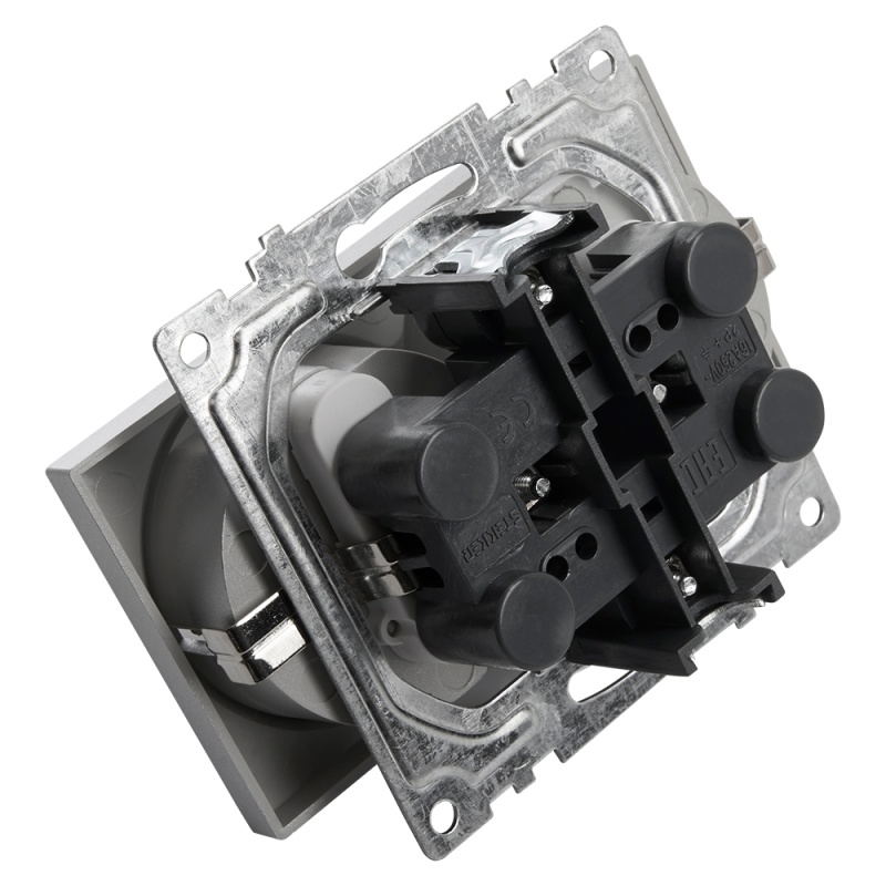 Розетка 2-местная с/з (механизм), STEKKER GLS16-7114-03, 250В, 16А с защитной шторкой, серия Катрин, серебро