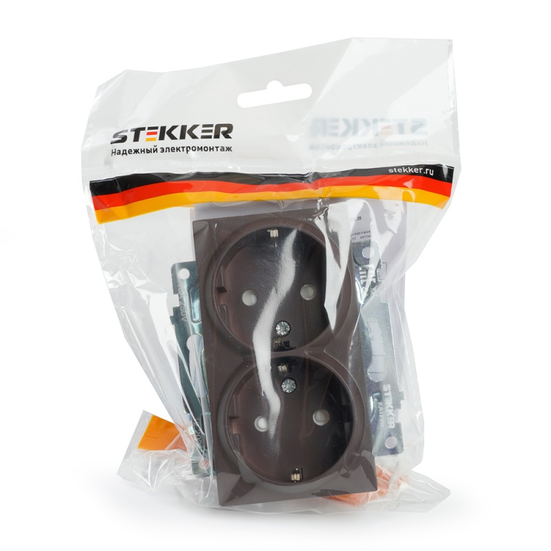 Отзывы о Розетка 2-местная с/з (механизм), STEKKER GLS16-7114-04, 250В, 16А с защитной шторкой, серия Катрин, шоколад