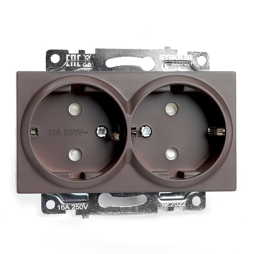 Розетка 2-местная с/з (механизм), STEKKER GLS16-7114-04, 250В, 16А с защитной шторкой, серия Катрин, шоколад