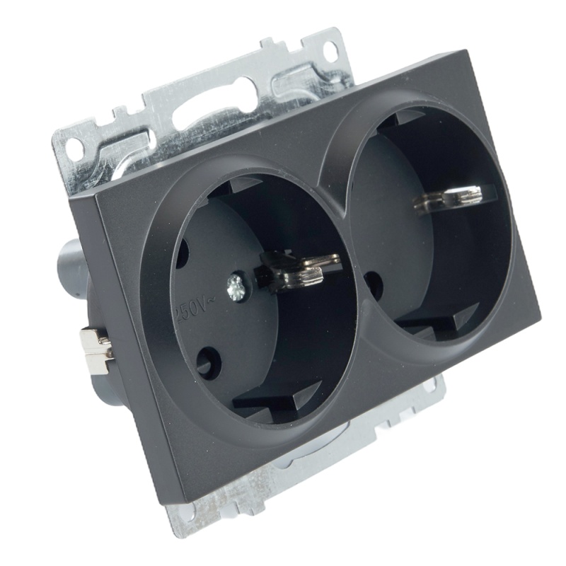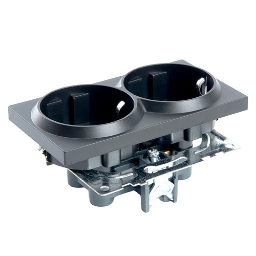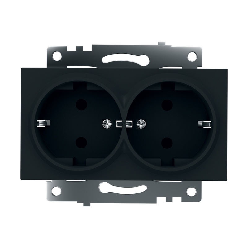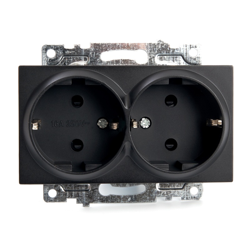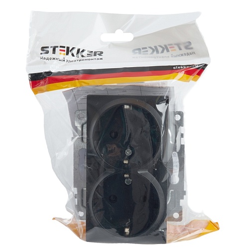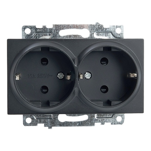 Розетка 2-местная с/з (механизм), STEKKER GLS16-7114-05, 250В, 16А с защитной шторкой, серия Катрин, черный 39612