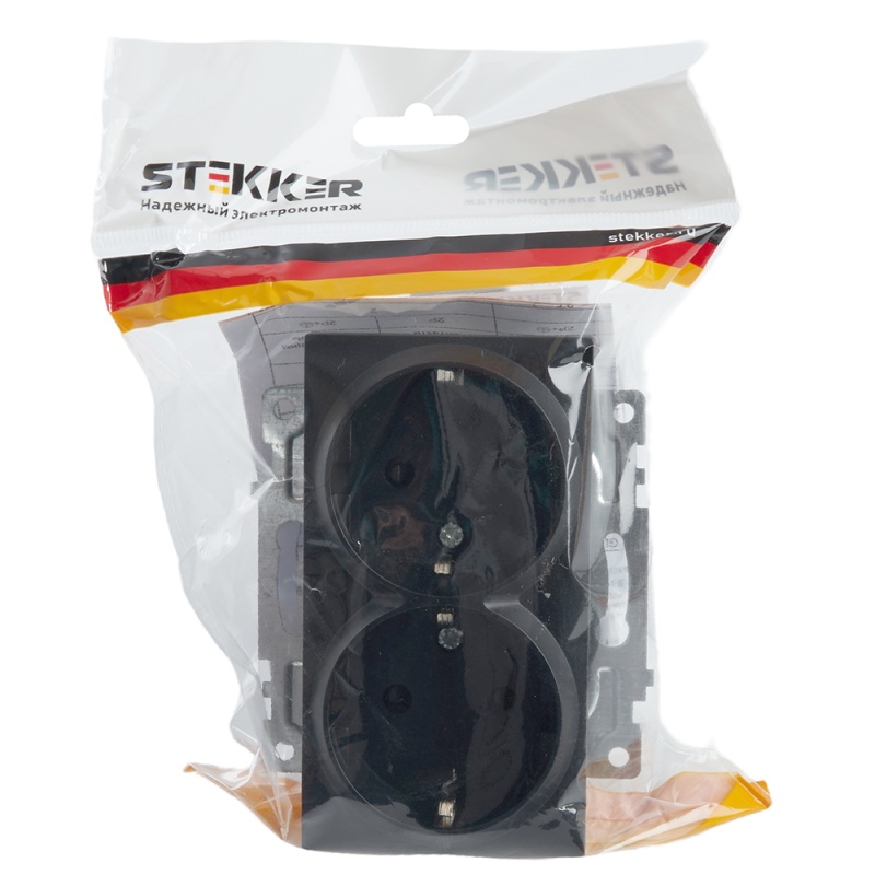 Отзывы о Розетка 2-местная с/з (механизм), STEKKER GLS16-7114-05, 250В, 16А с защитной шторкой, серия Катрин, черный